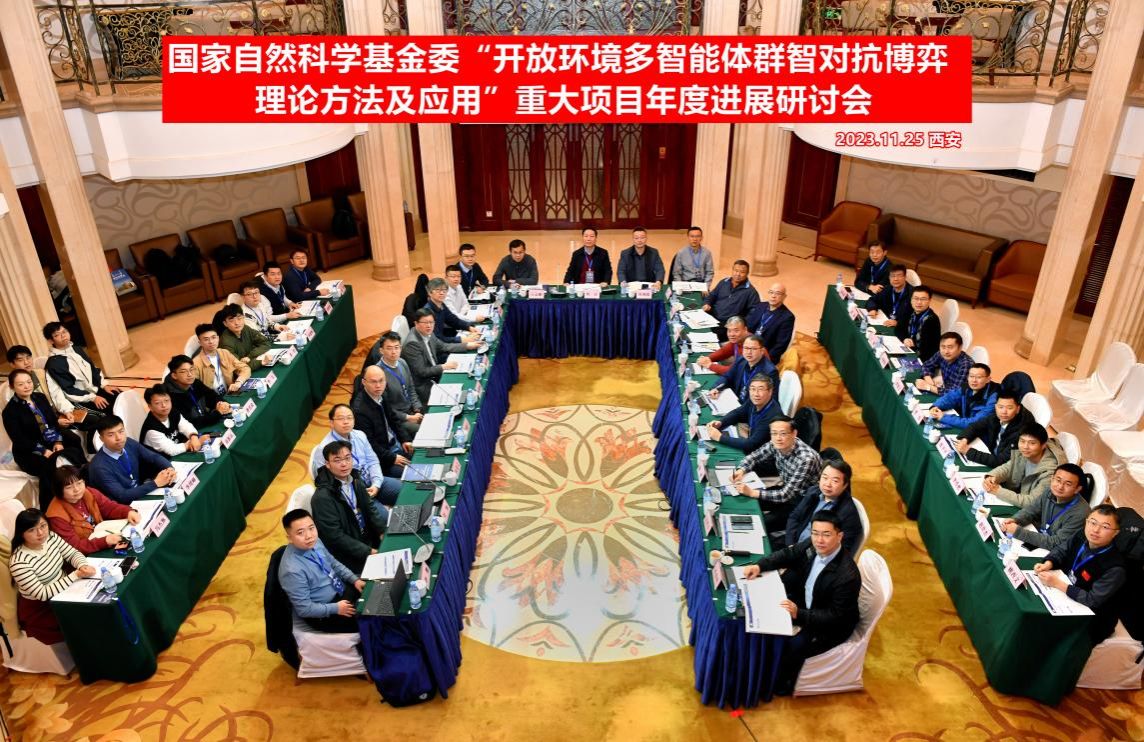 2023年11月25日上午,由中国工程院院士何友教授主持的国家自然科学基金重大项目“开放环境多智能体群智对抗博弈理论方法及应用”年度进展研讨会在西安顺利召开。