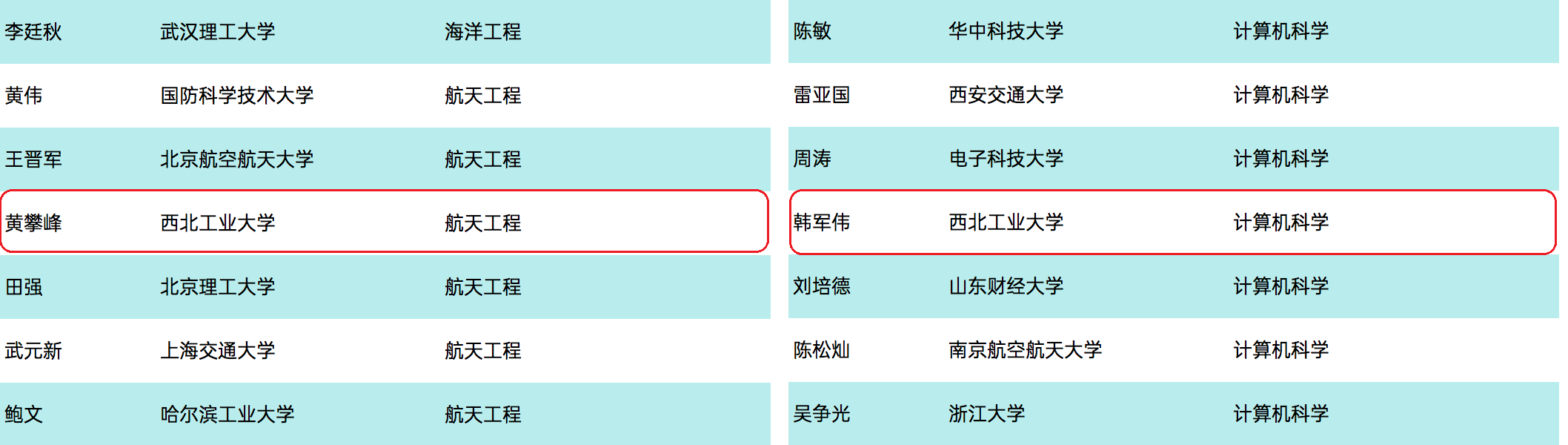 黄攀峰教授、韩军伟教授两位教授入选。