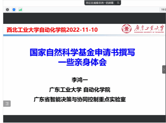 召开2023年度国家自然科学基金项目申报动员辅导会。会议特邀广东工业大学李鸿一教授针对国家自然科学基金项目申报事宜做线上辅导,学院教师和相关负责人共50余人参加会议。会议由学院副院长许斌主持。