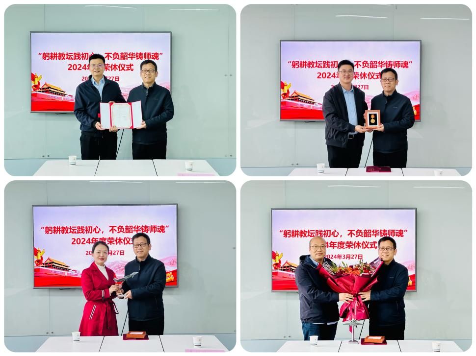 会上,刘准钆、易正阳、魏爱玉为杜新虎老师颁发荣休证书、荣休定制纪念章、荣休定制纪念品,教学实验中心青年教师代表梁波为杜新虎老师献花。