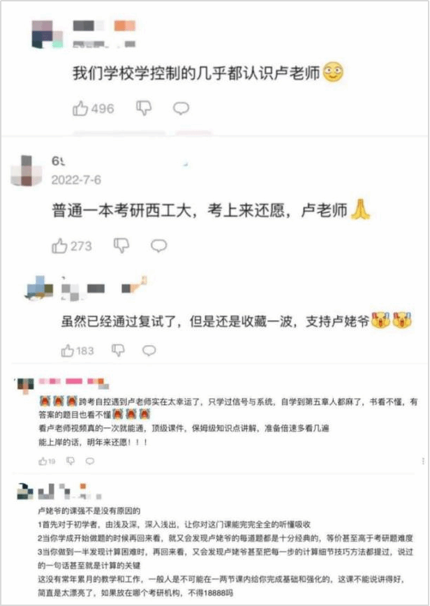 桃李不言,下自成蹊。在众多学子心目中,卢老师早已是男神般的存在,甚至被大家亲切称呼为“卢姥爷”。在他的视频课评论区,很多外校的同学都不约而同地惊呼:“每次听卢老师的课,总有一种想考动漫疯
