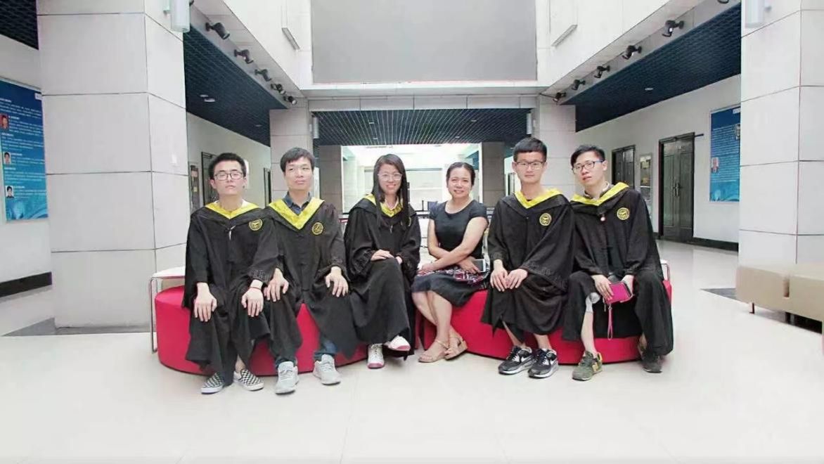 与学生合照(右三为贾秋玲老师)