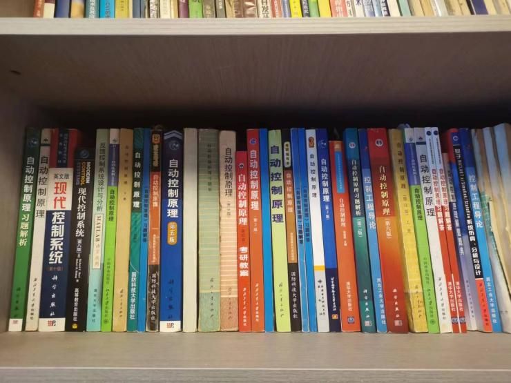 贾秋玲老师家里书架上的40余本《自动控制原理》