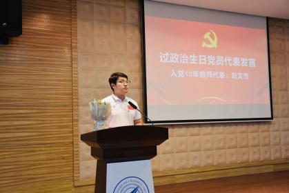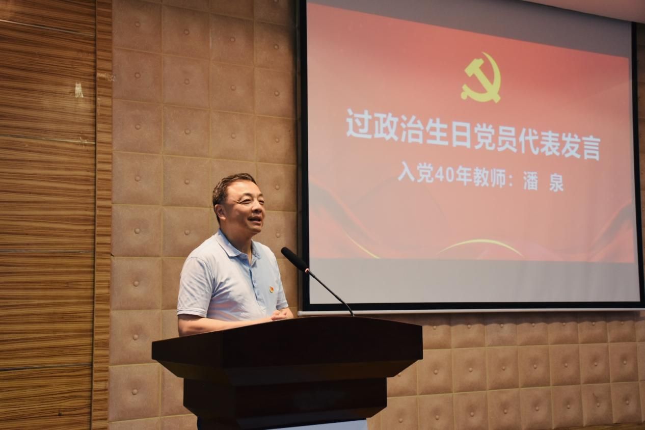 入党40年教师党员,学院原院长、党委书记潘泉教授为大家讲述了个人入党历程,以及入党40年的奋斗感想,并鼓励青年学子和青年教师要着眼当下、奋力拼搏,书写一部无悔于青春、无悔于时代的青春奋斗史。