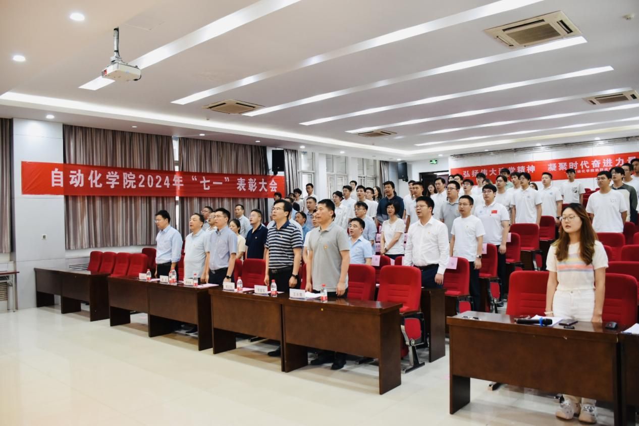 在多功能报告厅隆重召开2024年“七一”表彰大会,学院领导班子成员、党委委员、受表彰集体和个人、师生党支部书记代表、2024年新发展党员等参加本次大会,大会由党委副书记易正阳主持。