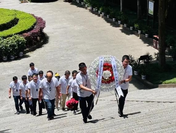 在井冈山革命烈士陵园,瞻仰大厅正面汉白玉墙面的“死难烈士万岁”六个大字是毛泽东1946年为革命烈士题写的,在吊唁大厅,培训班代表为革命烈士敬献花圈,全体成员一同默哀,为15744位井冈山革命根据地烈士,也为无数无名先烈示以亲切怀念,并聆听《坚定执着追理想》现场课,深度了解了2年4个月的斗争史,无数革命先辈为此牺牲了生命,他们坚定无畏、信念执着,他们敢于斗争、不怕牺牲,带着对他们的无上敬意,大家面对党旗,重温入党誓词,追忆初心,勇担使命。
