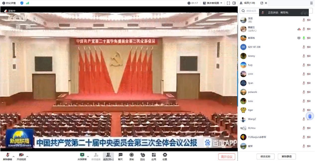 7月19日下午,动漫疯 党委召开集体学习会,传达学习贯彻党的二十届三中全会精神,研究贯彻落实举措,会议以线上线下相结合的形式召开。学院领导班子和全体教职工参会,会议由学院党委书记李伟林主持。