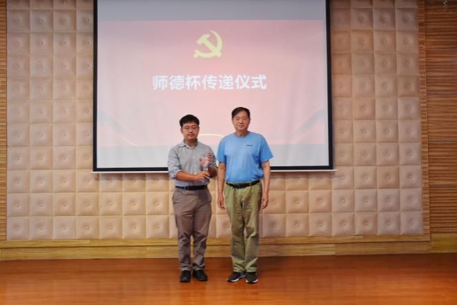 为更好传承学院长期以来形成的高尚师德风范,激励更多青年教师积极投身教育强国建设,表彰大会邀请了学院老一辈优秀教师代表郭雷教授为青年教师代表齐扬传递了“师德杯”。一座小小的“师德杯”,既承载着优良的师德师风传统,也寄托着一代代自动化人育才报国的决心与希望。 郭雷 教授勉励 青年教师坚定理想信念,深耕教学、潜心育人, 持之以恒地践行 立德树人 使命 , 并祝愿学院在新征程中继续蓬勃发展、再铸辉煌。