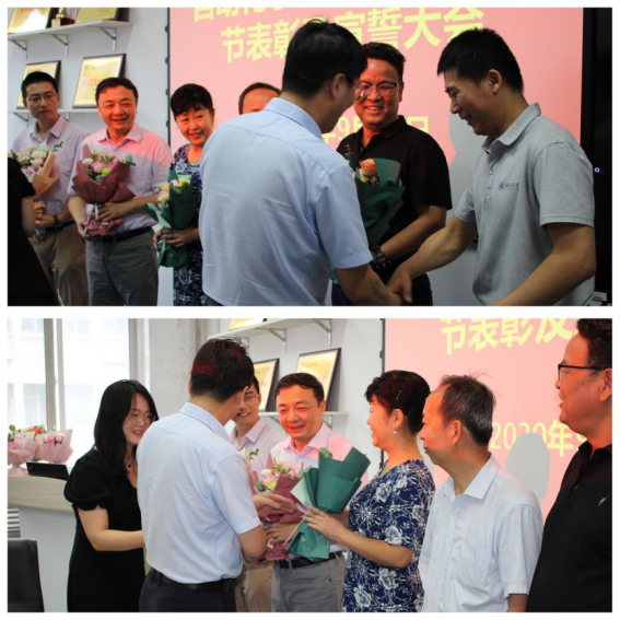 接下来,由学院领导班子成员潘泉、黄攀峰、马玥、许斌、刘准钆、王小旭分别为获奖教师颁奖并与大家合影留念。此次表彰大会有25名教师获奖,其中包括“动漫疯
