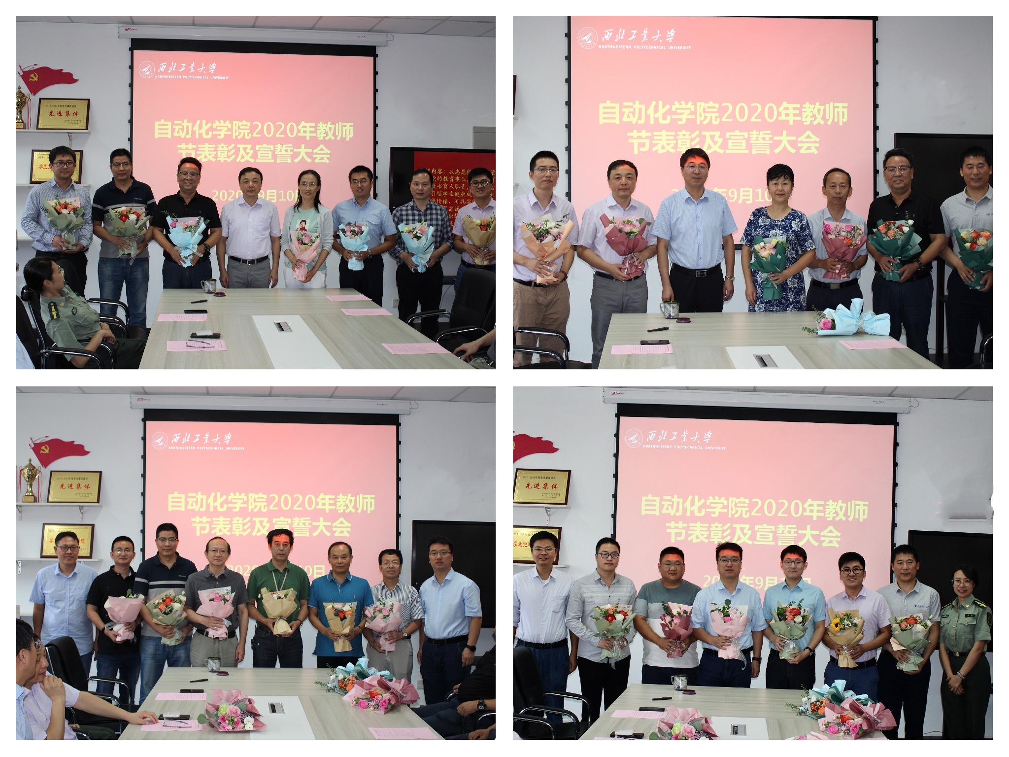 于9月10日上午10:00点在学院楼327党员活动室举行了2020年教师节表彰及宣誓大会。学院党委书记潘泉、院长黄攀峰,副书记李伟林、马玥,副院长许斌、刘准钆、王小旭,党委委员王长青,获奖教师及教师代表参加了本次大会。会议由党委副书记李伟林教授主持。
