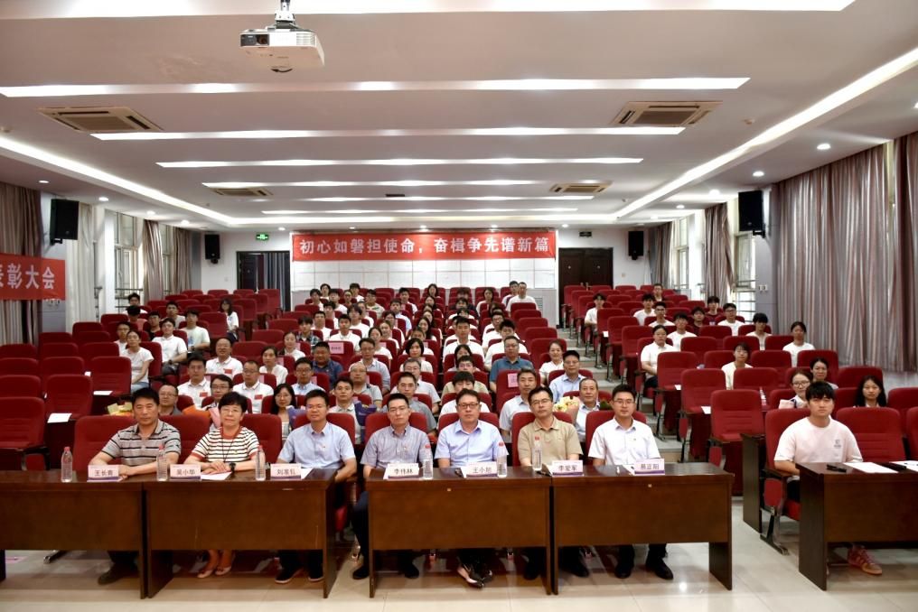 在学院报告厅召开2025年“七一”表彰大会。学院领导班子成员、党委委员、受表彰集体和个人、师生党支部书记代表以及新发展党员等参加本次大会。大会由党委副书记易正阳主持。