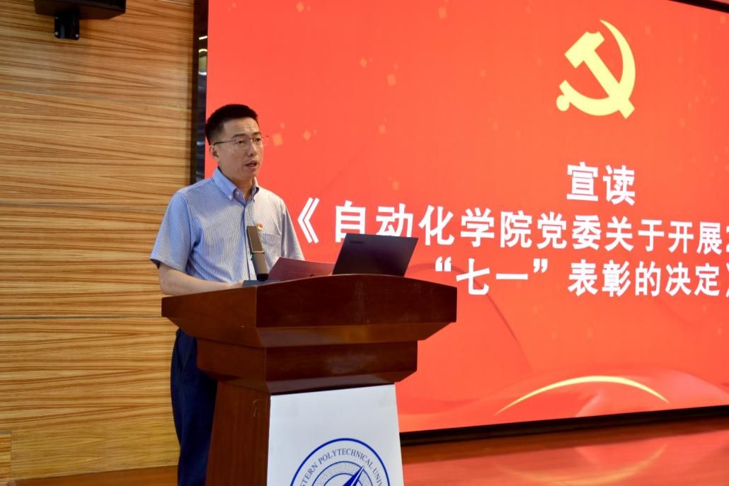 入党40年教师党员代表李玉忍教授为大家讲述了个人入党历程以及入党40年的奋斗感想,并深情回顾了学院的建设发展历程。他勉励青年师生,要爱岗敬业、奋勇拼搏,做一名合格的共产党员;要做到爱党、爱国、爱校,努力为强国建设、民族复兴贡献西工大力量。