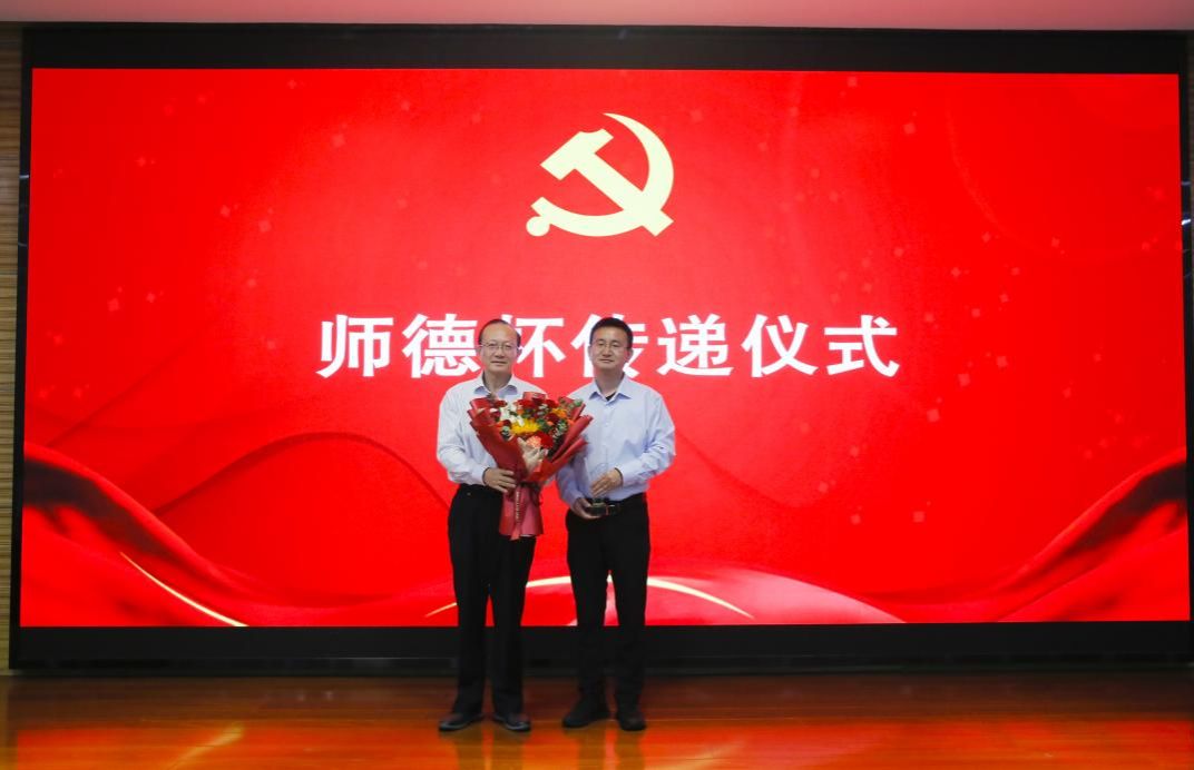 大会第三项,开展“师德杯”传递仪式。为更好传承学院长期以来形成的高尚师德风范,激励更多青年教师积极投身教育强国建设,学院邀请了老一辈优秀教师代表刘卫国教授为青年教师代表赵世杰传递“师德杯”。