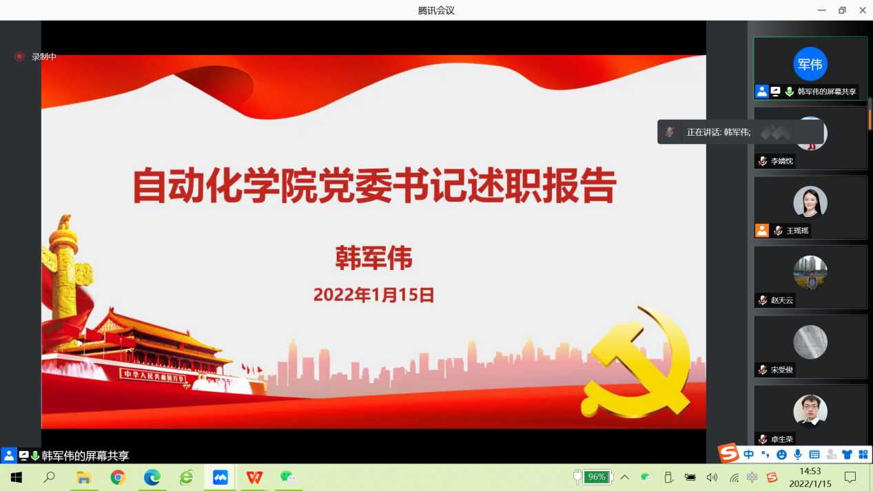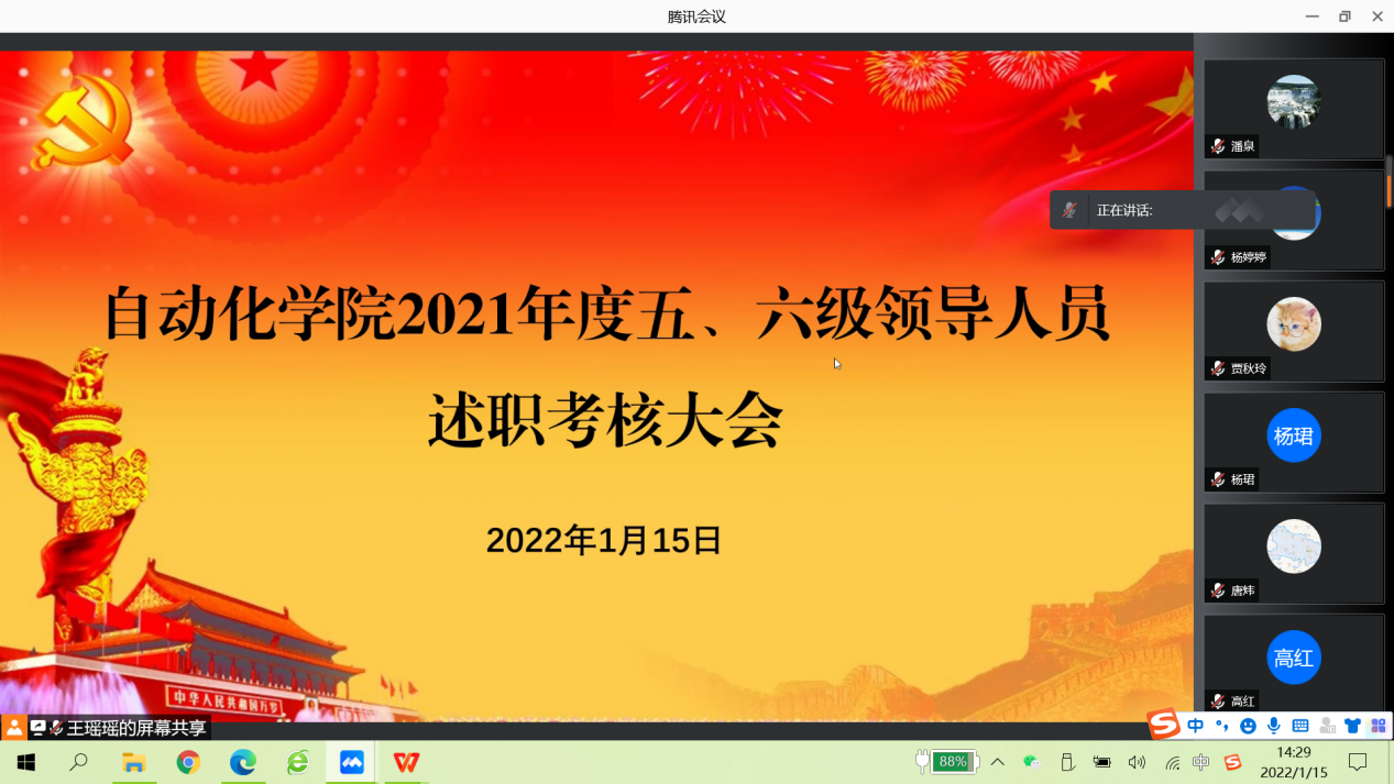 于1月15日线上召开2021年度五、六级领导人员述职考核大会。学院领导班子成员及全体教职工180余人参加。会议由学院党委书记韩军伟同志主持。