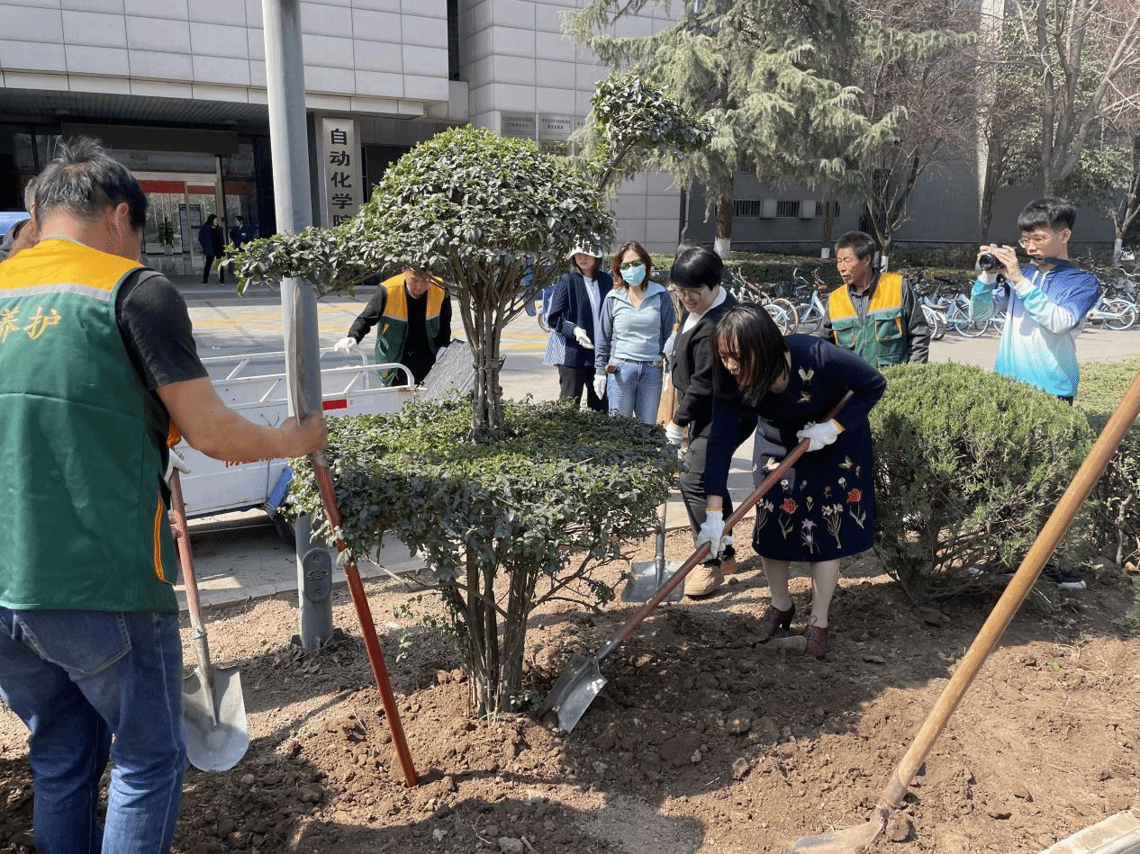 在后勤产业集团物业服务中心员工的专业指导下,参与的师生党员热情高涨,分工协作,纷纷挥锹铲土、扶苗填坑、种植新绿、播种希望,齐心协力为美丽校园增绿添彩,为建设宜学宜居绿色生态校园贡献力量。