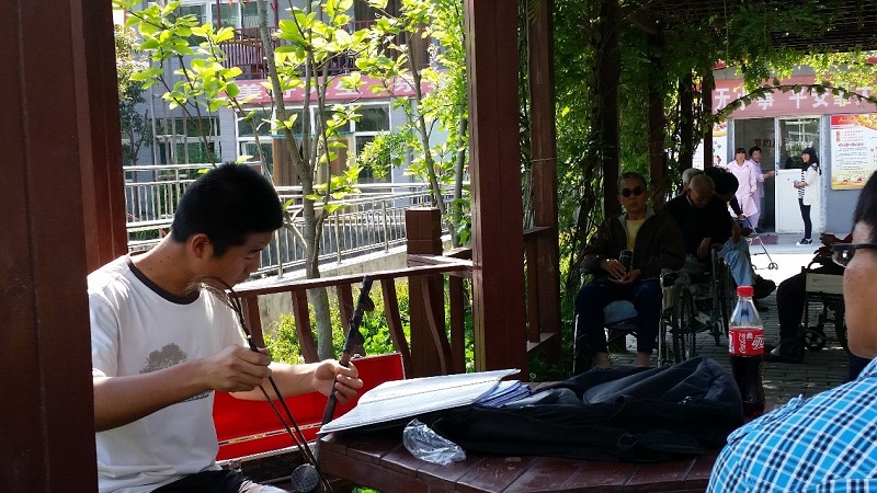 为了给老人带来更多的文化享受,在经过老年公寓工作人员的同意后,同学们为各位老人带来了京胡的弹唱,很多老人在听到熟悉的乐曲后都来到院子里,在悠扬的乐曲声中享受阳光,度过美好的一天。