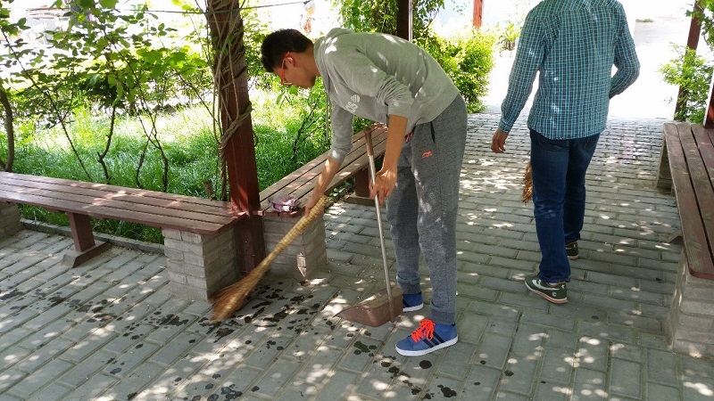 下午3时,师生一行带着为老人们专门准备的生活用品以及食物等来到了三春晖老年公寓。西安三春晖老年公寓是西安市民政局管理的一级一类养老院,居住着百余名老人。在详细了解了老年公寓的情况后,同学们开始了此次义工活动。由于老年公寓内面积较大,工作人员有时人手不够,因此同学们帮助工作人员们进行了打扫大院以及清理楼道,擦洗栏杆等工作项目,并帮助工作人员将有需要的老人从房间内推出来晒太阳,享受好天气。