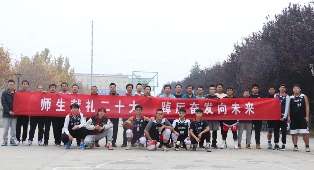 学院党委副书记(主持工作)李伟林为篮球赛开球。在激烈的比拼中,老师和学生都展现出强劲实力,同学们生龙活虎、老师们稳重老道,师生之间的精彩互动引得现场欢笑连连,最终教师联队以74:72险胜,为本次比赛画上完美的句号。赛后,老师与同学们亲切握手,学院党委副书记管峻为学生联队颁发党的二十大报告学习笔记,比赛在愉快的气氛中圆满结束。