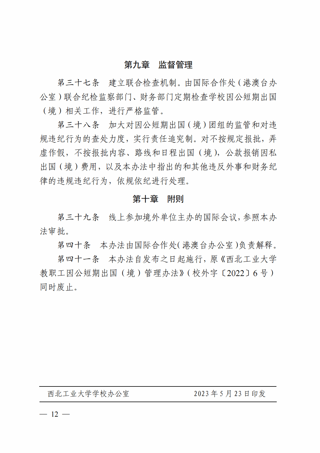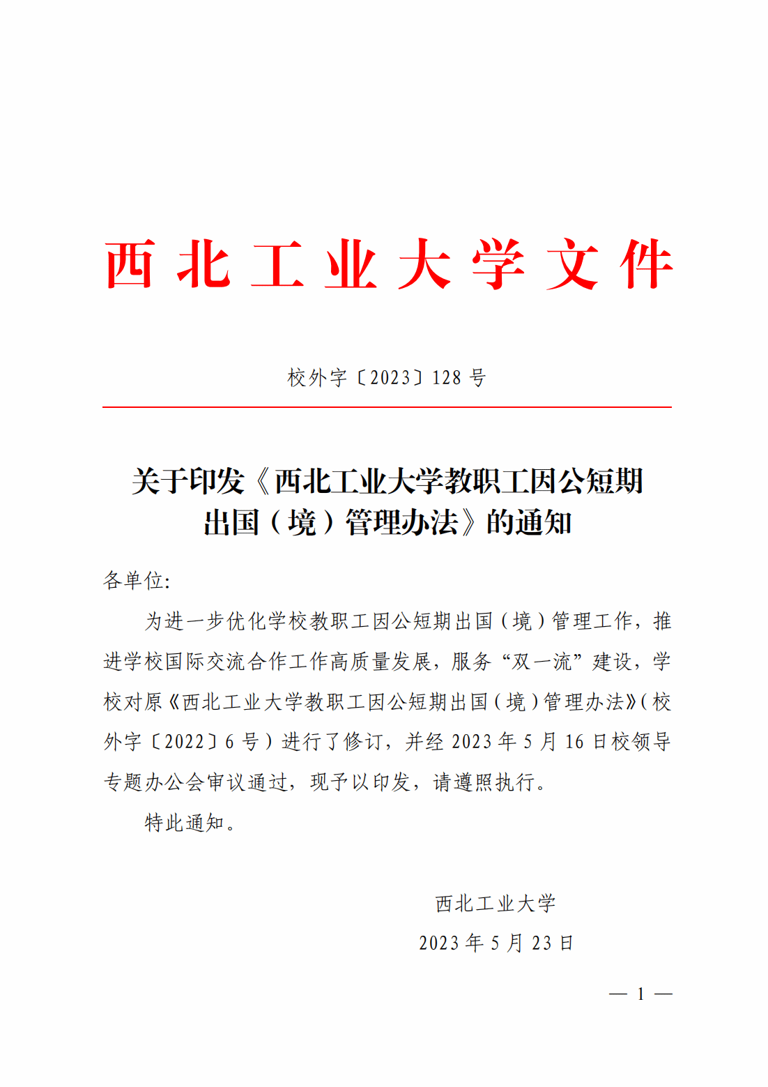 关于印发《动漫疯 教职工因公短期 出国(境)管理办法》的通知