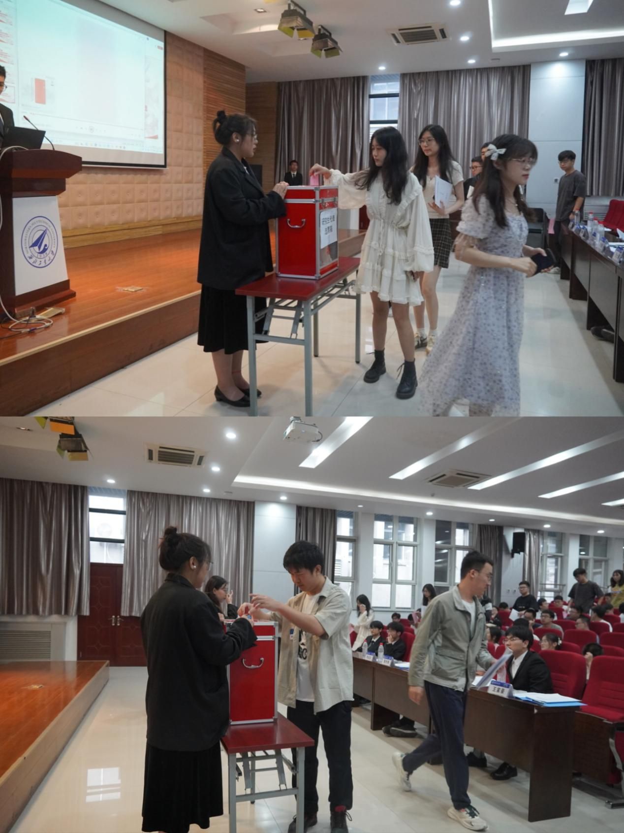 会议进行了公平、公正、公开的无记名投票选举,最终选举出由高泽源、耿陆、谢若杲组成的新一届学生会主席团及李怡、徐昕泽、方耀达三名研究生会主席团成员。选举结果由张作伟在会上宣布。