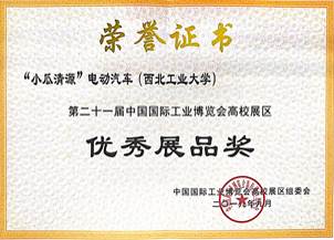 建设的陕西省新能源与混合动力国际科技合作基地以燃料电池为主动力的“小瓜清源电动汽车”项目参展本次工博会。同时,参加了本届工业博览会的创新挑战赛,并进行现场路演。展会期间,观众络绎不绝,尤其是氢能源在电动汽车和无人机上的应用引发大家热烈的讨论,基地成员都给予了耐心详细的解答。基地推出的最新项目产品——“燃料电池模拟器”更是得到来自全国各地参会嘉宾认可,认为具有很好的商业化价值。展位先后有教育部科技发展中心领导,上海市发改委、经信委、教委、公安局、科委、财政局等单位负责人,陕西省政府副秘书长兰建文和省工信厅、科技厅、发改委、国资委等部门领导及辽宁等省领导来参观指导、点赞。最终展品荣获“优秀展品奖”!