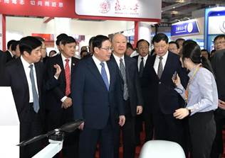 展区进行参观(高校展区唯一参观高校),并对我校各展品表示赞扬。