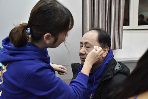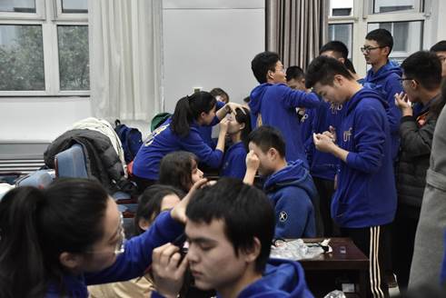楼里,师生们换上了宝蓝色的演出服装,画上了鲜亮的红妆,等着万众瞩目的那一刻到来。