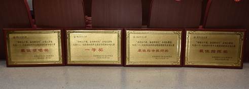 在“‘峥嵘七十载,奋进新时代’——庆祝中华人民共和国成立七十周年”主题合唱比赛中取得了团体一等奖、最佳指导教师、最佳领唱奖和最佳指挥奖的优异成绩!