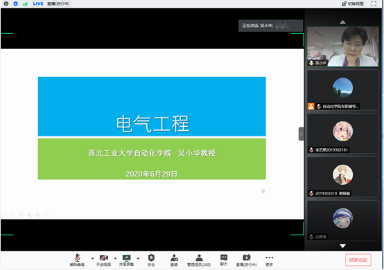首先,吴小华教授简要介绍了我院电气工程及其自动化专业的发展历史。同时吴小华教授通过“四好”介绍了我院电气工程的特色:①好听——在诸多国家重大项目中,我院电气工程专业均有参与,并发挥重要作用。②好学——专业师资力量雄厚,培养方案完备。③好玩——学生有丰富的科研实践机会以提高学生的动手能力达到“知行合一”。④好前程——电气工程专业毕业生升学率、就业率高,就业前景好,薪资丰厚。