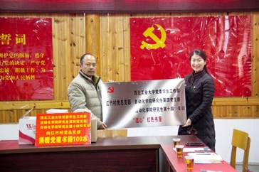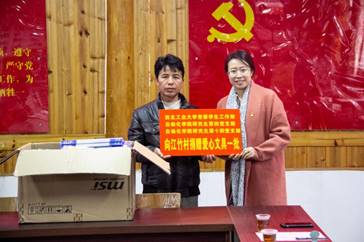随后,马俊副部长和马玥副书记向江竹村党总支捐赠图书和文具,共建“连心”红色书屋。全力支持江竹村党建工作,促进党支部规范化建设,推进党支部建设取得新成效。