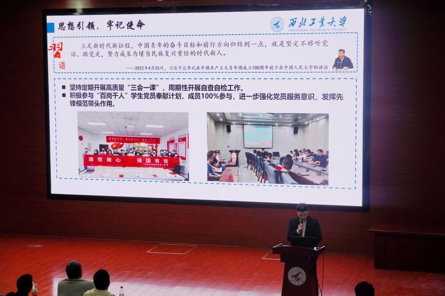 09012006班班长吴朋铖代表班级进行班风展示。秉承“树立为祖国为人民永久奋斗、赤诚奉献”的理想信念,班级围绕着思想+信念、形成了独特的“党建+”班级文化。班级致力于培育“总师型”人才,并于本学年实现三项“第一”、三个“100%”等学业成就。09012006班鼓舞着同学们推进优良班风建设并树立争做“总师型”人才的宏大目标。