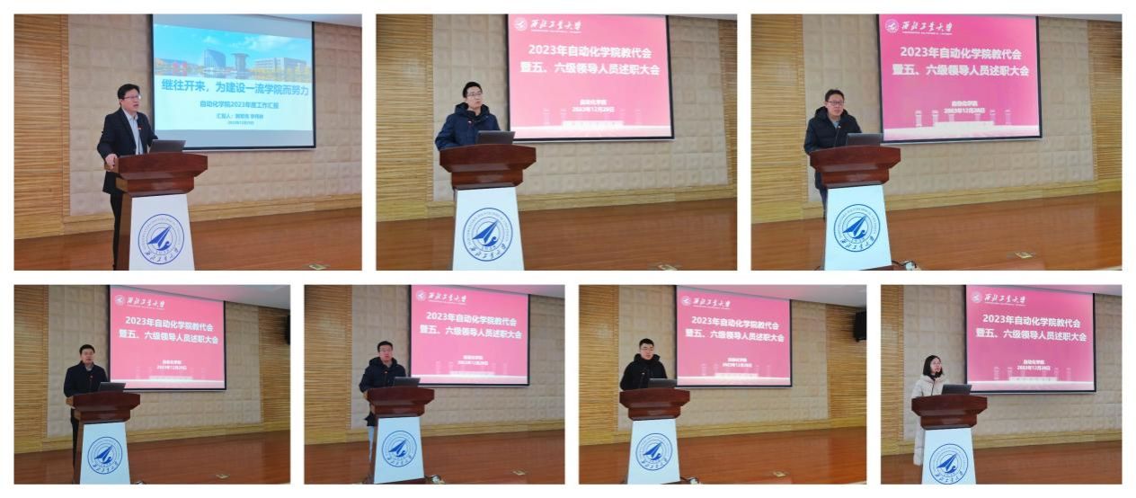 李伟林简要向与会人员说明了本次述职测评会的相关要求及具体流程。随后,院长韩军伟向与会人员作题为“继往开来,为建设一流学院而努力”的2023年度学院工作汇报暨个人述职报告,系统阐述了学院本年度工作思路与业绩,并提出了下一步工作的重点方向及举措。其他院领导李伟林、王小旭、刘准钆、许斌、管峻、王丽结合各自分管工作,分别从深入学习贯彻习近平新时代中国特色社会主义思想和党的二十大精神,扎实推进“双一流”建设,落实“127”发展目标、履行岗位职责、作风建设情况,以及下一步工作计划等方面进行了述职汇报。述职结束后,参会人员对学院领导班子成员进行了测评打分。