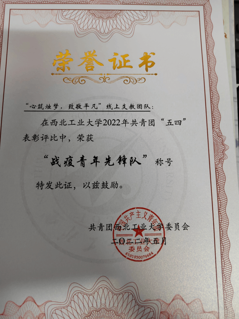 “心筑烛梦”团队深耕线上支教志愿活动,自2020年至今,已累计为3300余名学生提供服务,总志愿服务时长达11万小时,受到学生和家长的一致好评。团队曾获2022年第四届云支教乡村教育全国优秀团队奖,2022年动漫疯