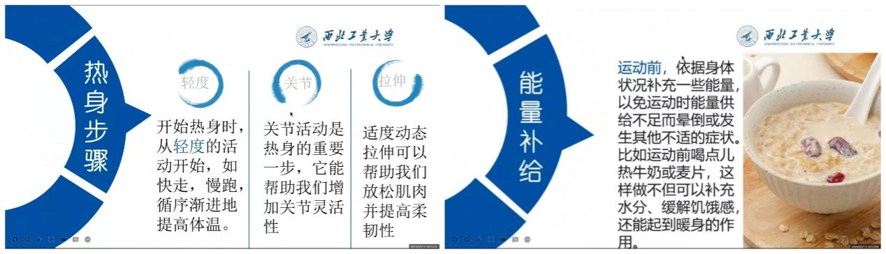 田径队团支部的团支书蒋怡斐负责活动策划;副书记时康哲和组织委员吴嘉懿结合支部同学们的建议制作了内容详实、画面精美的PPT;谢昊朋给同学们带来生动细致的宣讲并和同学们进行互动,同时将宣讲录屏发布在交流答疑群中供同学们回看学习。