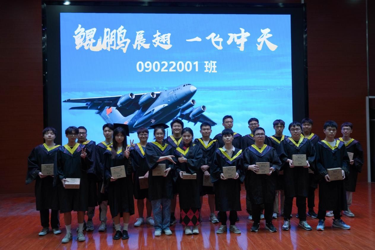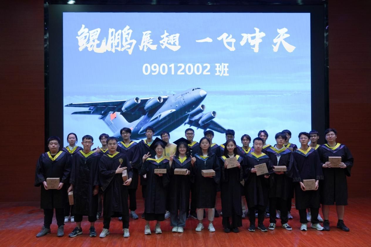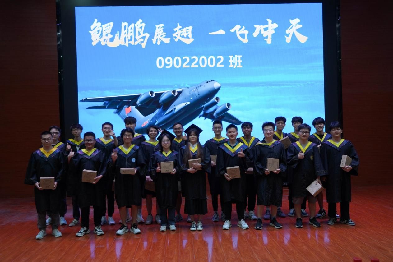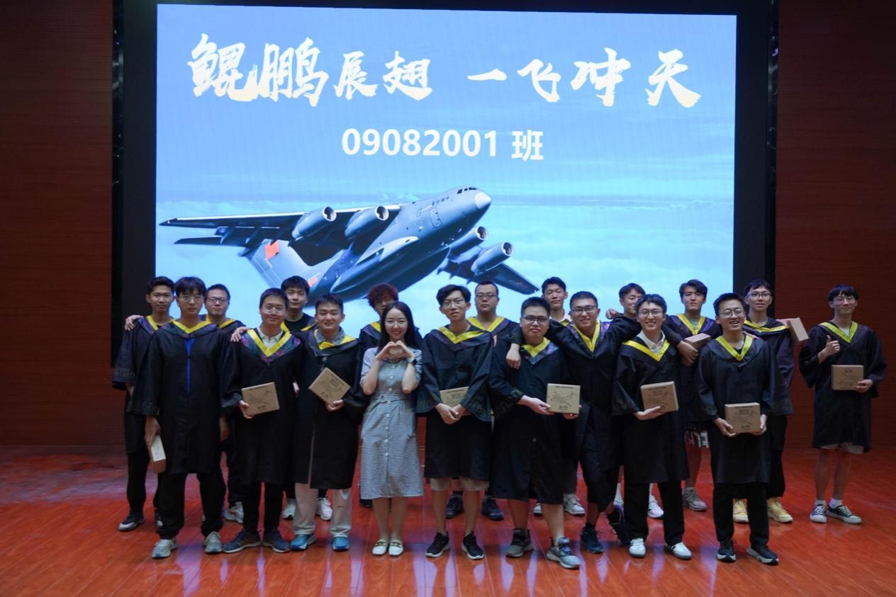 校友黑文静为毕业生讲授了“总师思政课”——《鲲鹏展翅九万里 长空无涯任搏击》,她讲述了运-20研制初期在时间紧、任务重、经验少的情况下,团队以坚定的信念及奋力进取的创新精神,经过无数次的推演、试验、验证,从无到有,实现了“五年首飞,八年交付”的“中国速度”,用加速度走出了一条我国自主创新研发大飞机的成功之路。她回顾了运-20成功首飞以来数次执行重大任务,助力我国经济和国防现代化建设事业高速发展的光辉历程。此外,她以中国第一型自主研发的歼击轰炸机总设计师陈一坚的航空报国事迹以及航空小夫妻十年“孕育”国之重器的经历,勉励广大毕业生在国家需要中绽放梦想,在急难险重中锤炼意志,在想用就有中实现成长。易正阳代表学院为黑文静颁发动漫疯