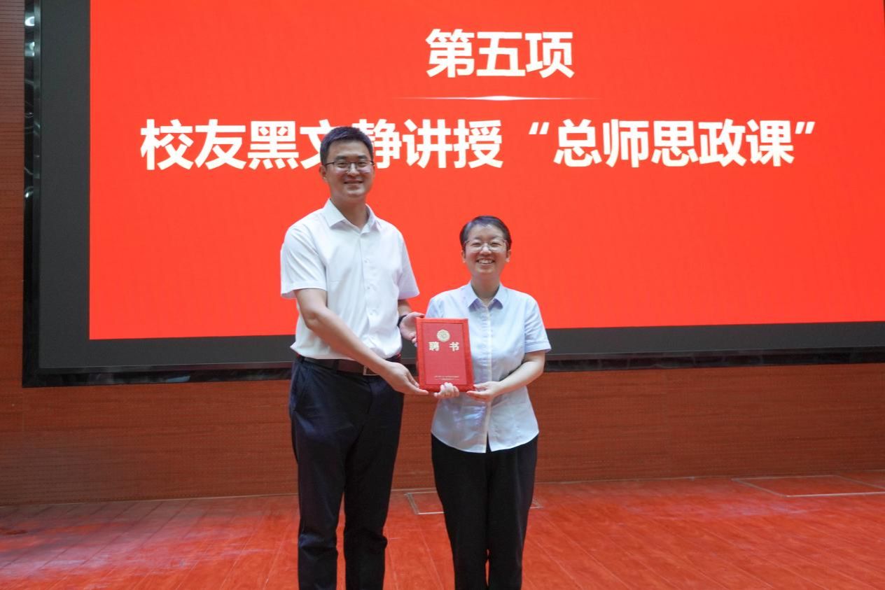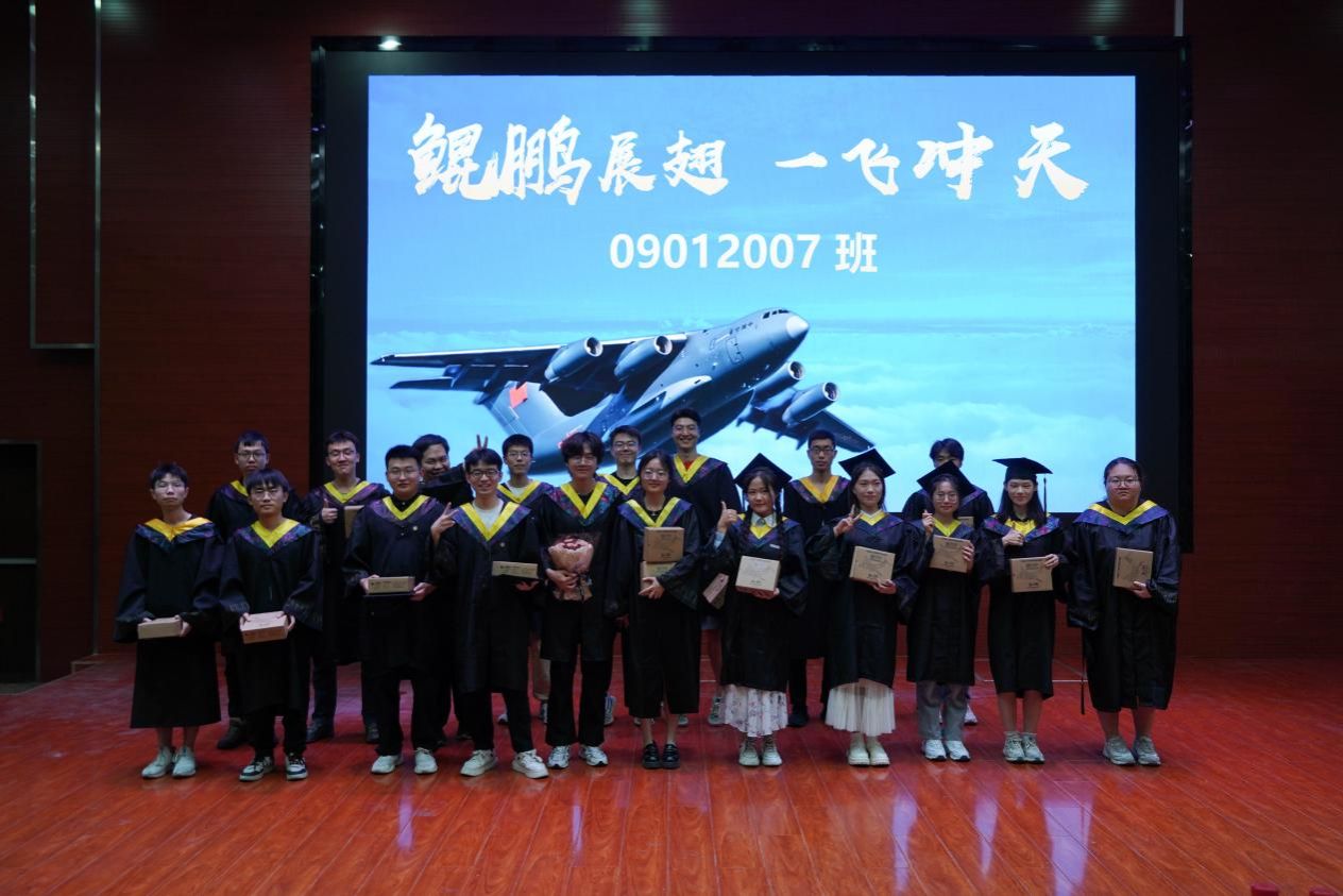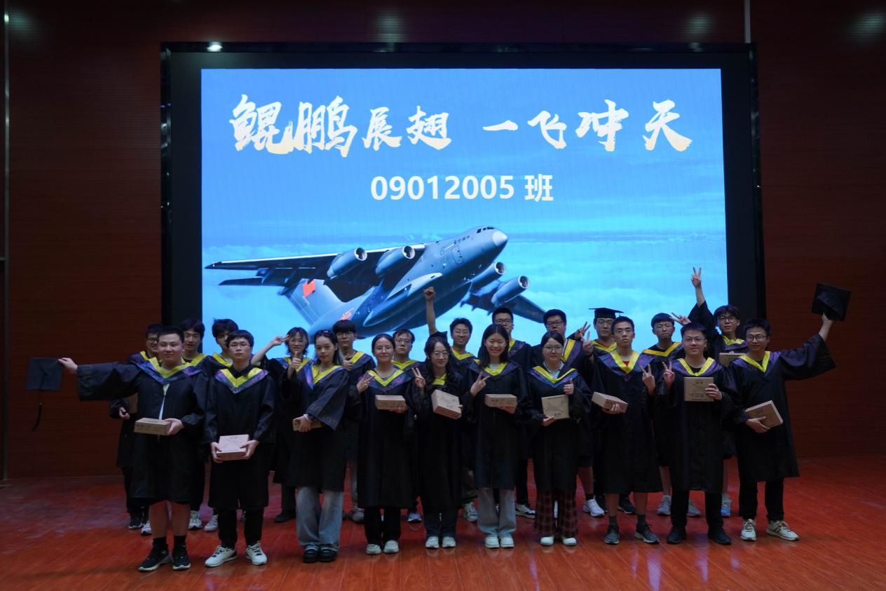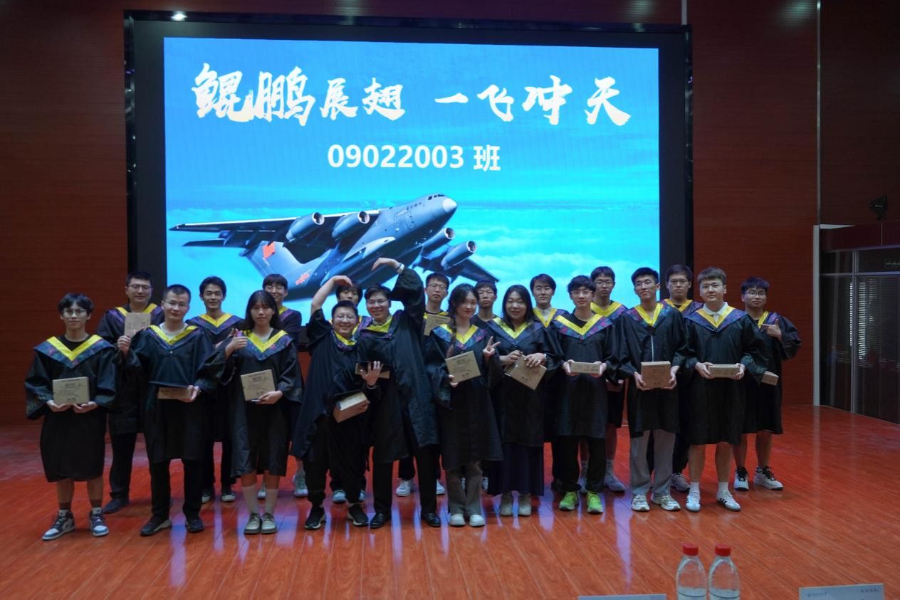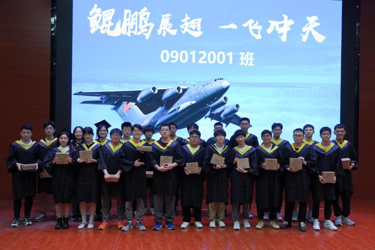 校友黑文静为毕业生讲授了“总师思政课”——《鲲鹏展翅九万里 长空无涯任搏击》,她讲述了运-20研制初期在时间紧、任务重、经验少的情况下,团队以坚定的信念及奋力进取的创新精神,经过无数次的推演、试验、验证,从无到有,实现了“五年首飞,八年交付”的“中国速度”,用加速度走出了一条我国自主创新研发大飞机的成功之路。她回顾了运-20成功首飞以来数次执行重大任务,助力我国经济和国防现代化建设事业高速发展的光辉历程。此外,她以中国第一型自主研发的歼击轰炸机总设计师陈一坚的航空报国事迹以及航空小夫妻十年“孕育”国之重器的经历,勉励广大毕业生在国家需要中绽放梦想,在急难险重中锤炼意志,在想用就有中实现成长。易正阳代表学院为黑文静颁发动漫疯