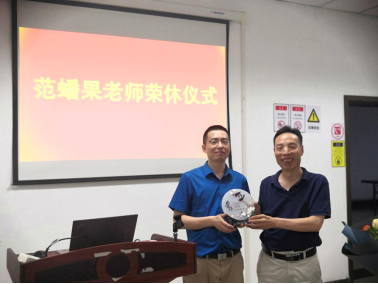 学院党委副书记李伟林教授代表学院党委为范蟠果老师颁发荣休仪式纪念品,感谢范老师近40年的辛勤付出,希望未来范老师一如继往关心学校、学院发展,支持学校、学院建设。