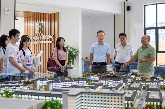 座谈会结束后,方原带领实践队来到田间地头。群山缭绕,流水潺潺,肥沃的稻田里,禾花鲤悠然戏水;层层的梯田上,茶树郁葱林立。方原实地介绍了江竹村的脱贫攻坚工作开展情况与工作成效。实践队员结合专业特长与方原交流了学院针对江竹村现状拟构建的科技扶贫项目,并认真听取了方原的指导意见。