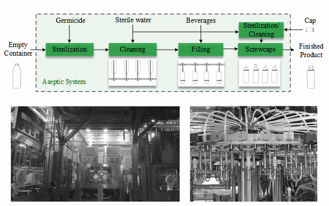 图. 工业罐装生产线流程(左)及喷嘴的压力输出值(右)(指定时间为5s)