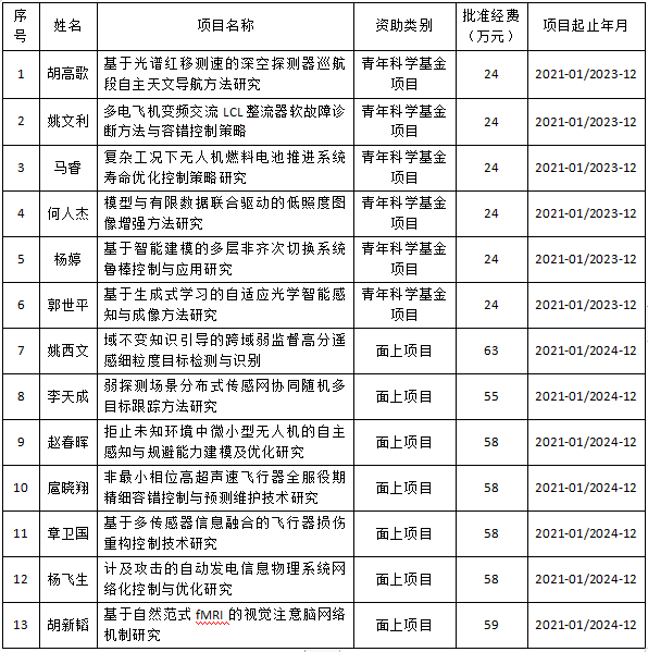 2021年度国家自然科学基金获批