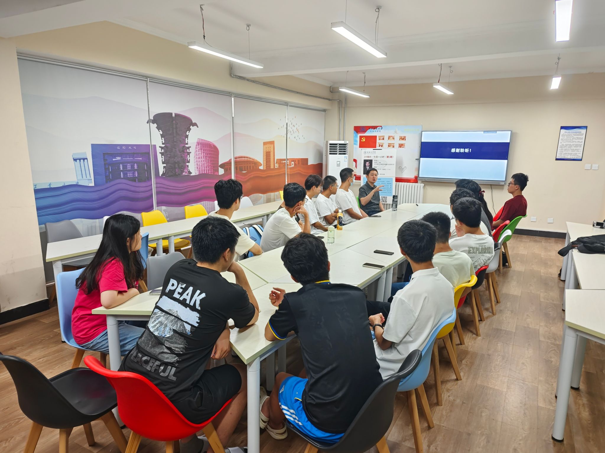 在星天苑G座一站式社区活动室开展了第七期“小9有约·午间一小时”活动。范泉涌副教授首先详细介绍了其所在实验室的研究方向与团队建设情况,为同学们搭建起了解科研实践的直观认知。随后,他针对本科生当下的核心困惑展开解答,他深入剖析了自动化专业“软硬结合”的特色优势,建议同学们结合个人兴趣锚定研究方向,同时着重强调夯实专业基础对长远发展的关键作用。在此基础上,范老师还分享了自身考研、读博的深造经历,清晰梳理了毕业后不同的求学路径,为同学们提供了切实参考。互动环节中,师生围绕职业规划、升学准备等话题热烈交流,现场氛围轻松融洽,同学们均表示此次分享让自己收获满满。