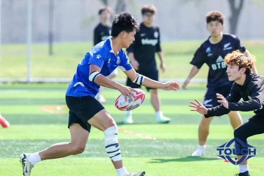 男子组赛场,首战对阵东北大学,“啸天虎”队展现出强劲的进攻火力。我方队员多次冲击对手防线,在中路找准机会率先达阵,队员们顶住对手反扑压力,最终以5:3逆转战胜东北大学,拿下男子组开门红。