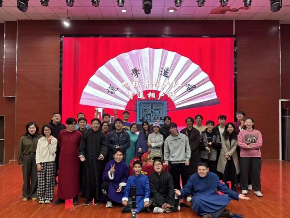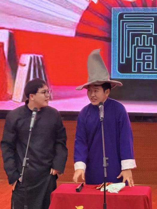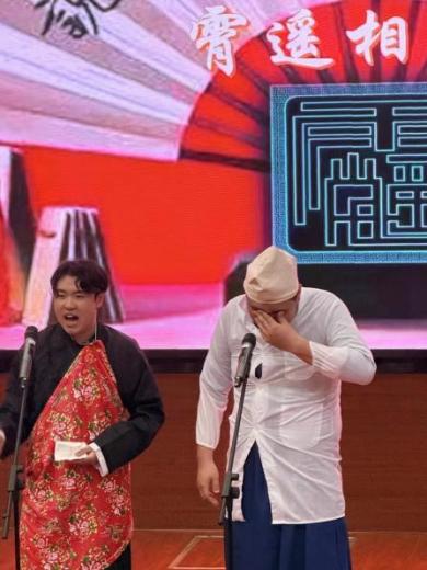 学生九弦音艺术团霄遥相声队在教学西楼D100教室顺利开展“喜长新”相声大会,本次活动也是霄遥相声队第四次专场演出。历经数周的精心准备,队员们以最佳状态登台。一段段诙谐幽默的相声,一句句引人捧腹的台词,不仅烘托出欢乐氛围,更让传统曲艺的韵味在观众间悄然传递。