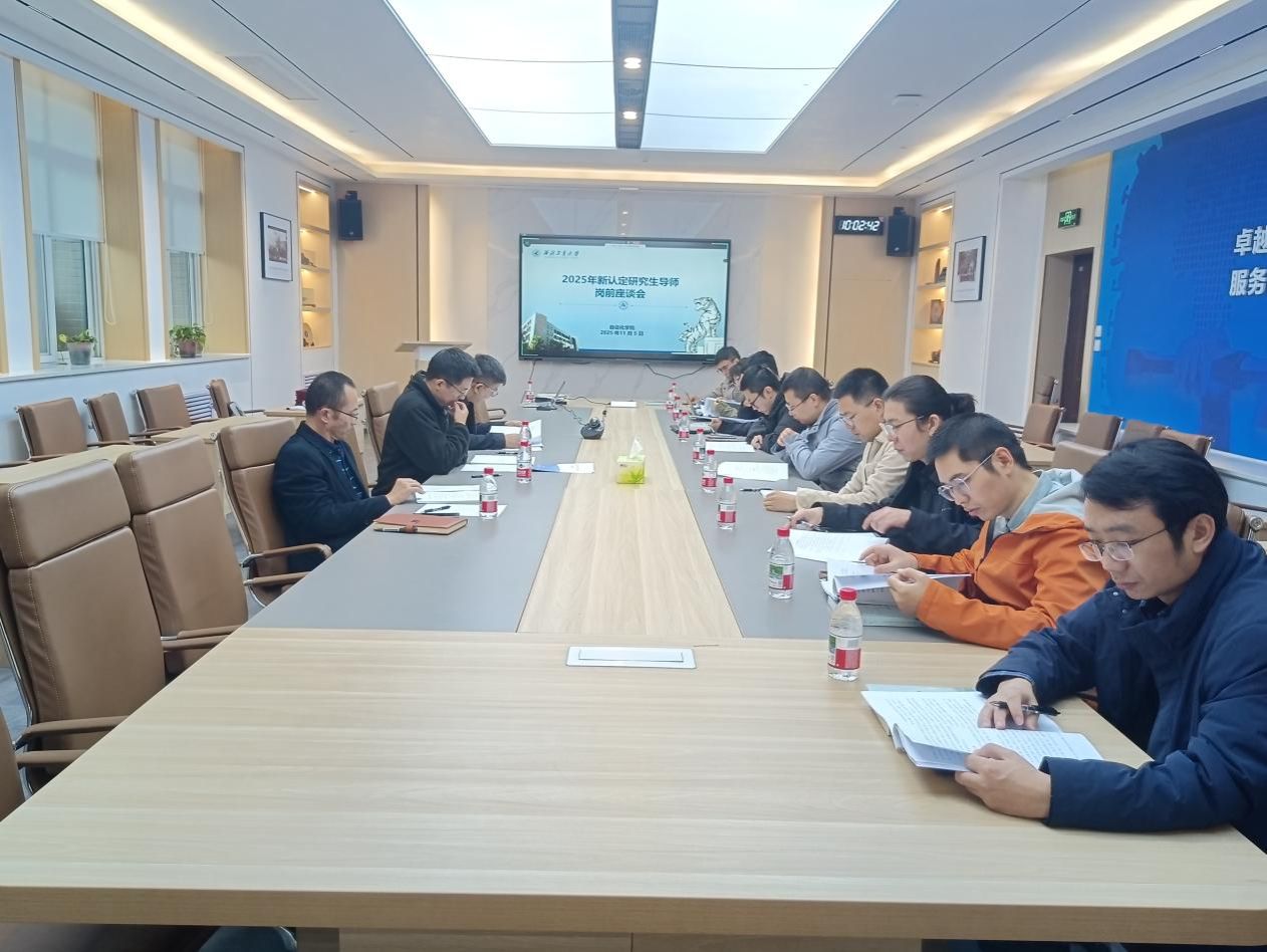 研究生岗前谈话工作办法》,并重点介绍了导师岗位要求、基本素质要求、研究生学籍规定、培养过程管理、学位成果要求等各项政策与规章制度,要求各位导师不断强化自身业务能力,为育人工作筑牢坚实基础。
