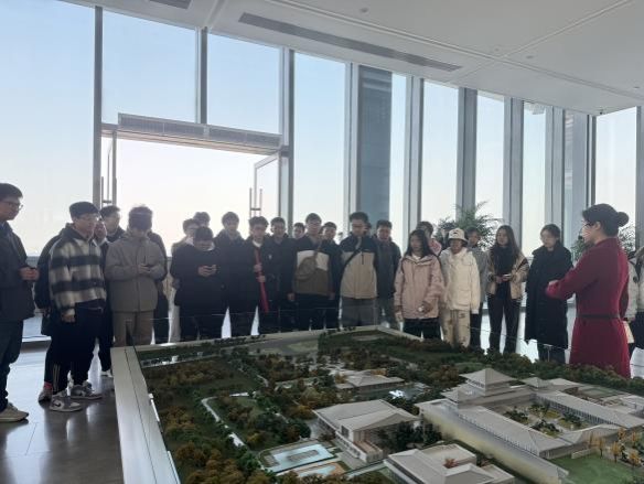 在参观文化展馆中,同学们在青铜器何尊展柜前驻足。从青铜器的兽面纹与饕餮纹中,同学们解读出器物所承载的礼制奥秘——何尊铭文“宅兹中国”的庄重宣言,商周酒器“尊卑有序”的形制规范,每一道纹路都诉说着先民“以器载道”的文明建构智慧。商周匠人以炽热的铜汁浇铸礼制秩序,而今日青年则以敬畏之心守护文化原典,以创新之力激活传统基因。正如铭文所示,“传遗后世子孙”,新时代的“何以中国”之问,正是我们以自信为锤、热爱为范,在青铜文明的脉络上镌刻时代答案。