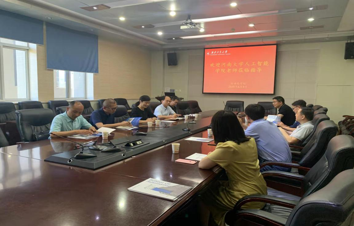在师资队伍、人才培养、科学研究、国际交流方面的情况。潘泉教授介绍了信息融合重点实验室的主要研究方向以及平台建设工作。路扬院长介绍了河南大学人工智能学院的基本情况,双方围绕团队建设、科研方向、人才培养等方面进行了探讨交流。