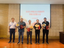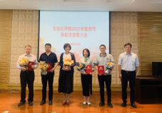 接下来,由学院领导班子成员分别为获奖教师颁发证书并与大家合影留念,并由学生代表为导师鲜花感恩。此次表彰大会涉及奖项共分为4个大类,分别为校级奖项类、人才培养类突出贡献奖、科学研究类突出贡献奖和课程教学类突出贡献奖。