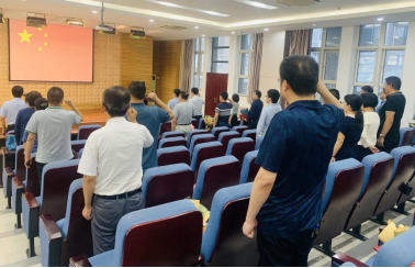 随后,由党委书记韩军伟带领学院全体教师在国旗下宣誓。与会教师在国旗下,举起右手,宣读誓词。现场庄重、严肃,每一句誓词都饱含各位教师对于教书育人工作的责任与深沉热爱。
