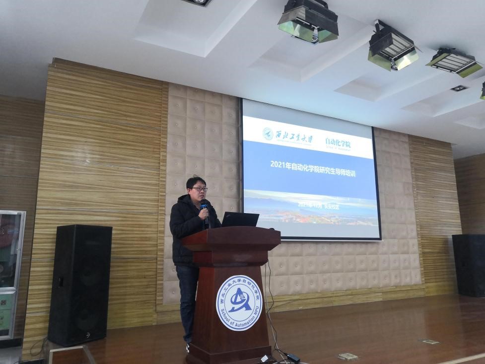 在学院报告厅组织召开2021年第二期导师培训会。副院长王小旭就学校相关政策进行解读,并就学院研究生培养现状及与兄弟学院比较情况、学院相关政策和2022年研究生教学重点工作等进行了全面的培训讲解。