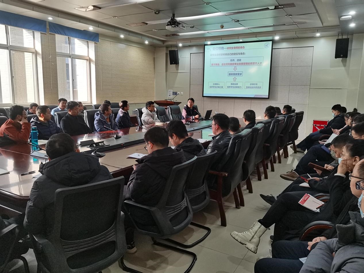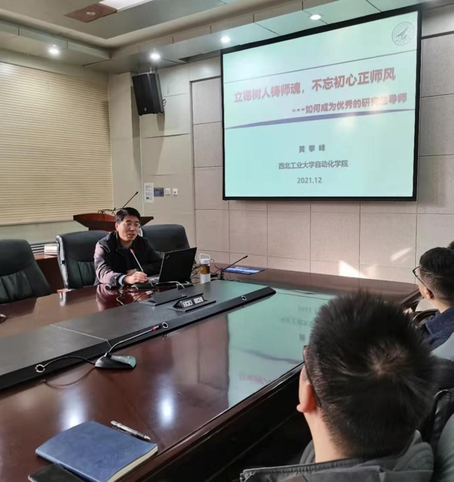 院长黄攀峰在学院341会议室为青年导师讲授《立德树人铸师魂,不忘初心正师风——如何成为优秀的研究生导师》专题思政课。全院近3年遴选的56名导师参与学习。